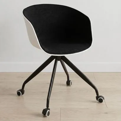 Silla de Oficina con Reposabrazos - Silla de Escritorio con Ruedas - Blanco y Negro - Jodie