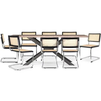Pack Mesa de Comedor Diseño Industrial de Madera (220cm) & 8...