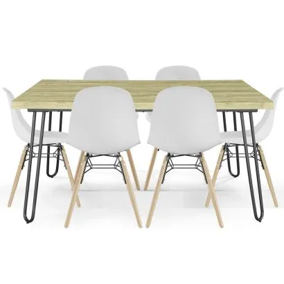 Pack Mesa Hairpin (90x15cm) + 6 Sillas de Comedor Nórdicas S...