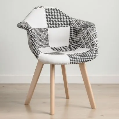 Silla de Comedor con Reposabrazos -Tapizada en Patchwork - Blanco y Negro - Dominic