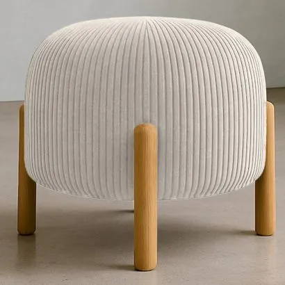 Puff Redondo Tapizado en Pana con Patas en Madera Natural - ...