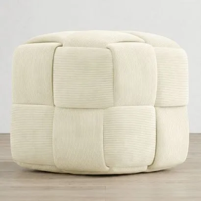 Puff Redondo Tapizado en Tela Bouclé - Posera