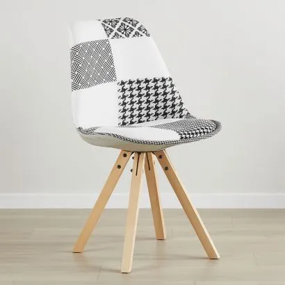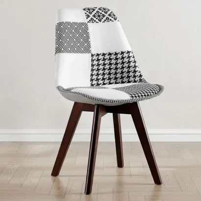 Silla de Comedor - Tapizado en Patchwork Blanco y Negro - Nu...