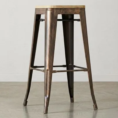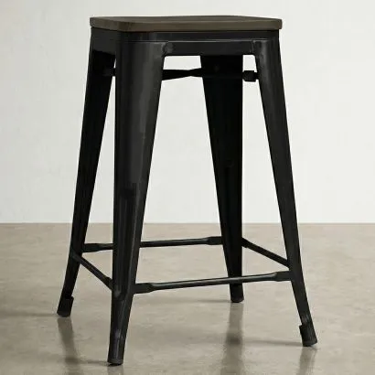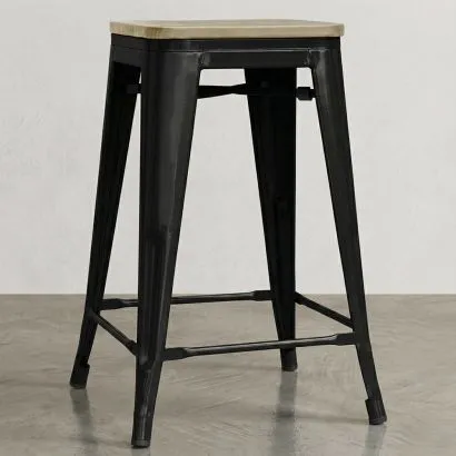 Taburete Diseño Industrial - Madera y Acero - 45 cm -Stylix
