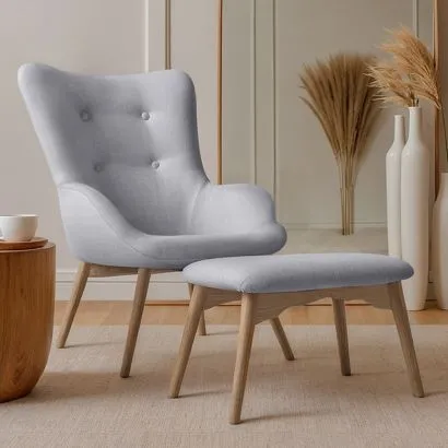 Sillón con Reposapiés - Tapizado en Terciopelo - Estilo Escandinavo - Huda